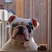 • Stitch is registered to the contest to win money with this photo: bulldog, dog, window, paw, pet, curious, animal, face, indoors, wooden_fence, close_up, mammal, looking, snout, ears, portrait, domestic_animal, resting_paw, expression, pet_animal